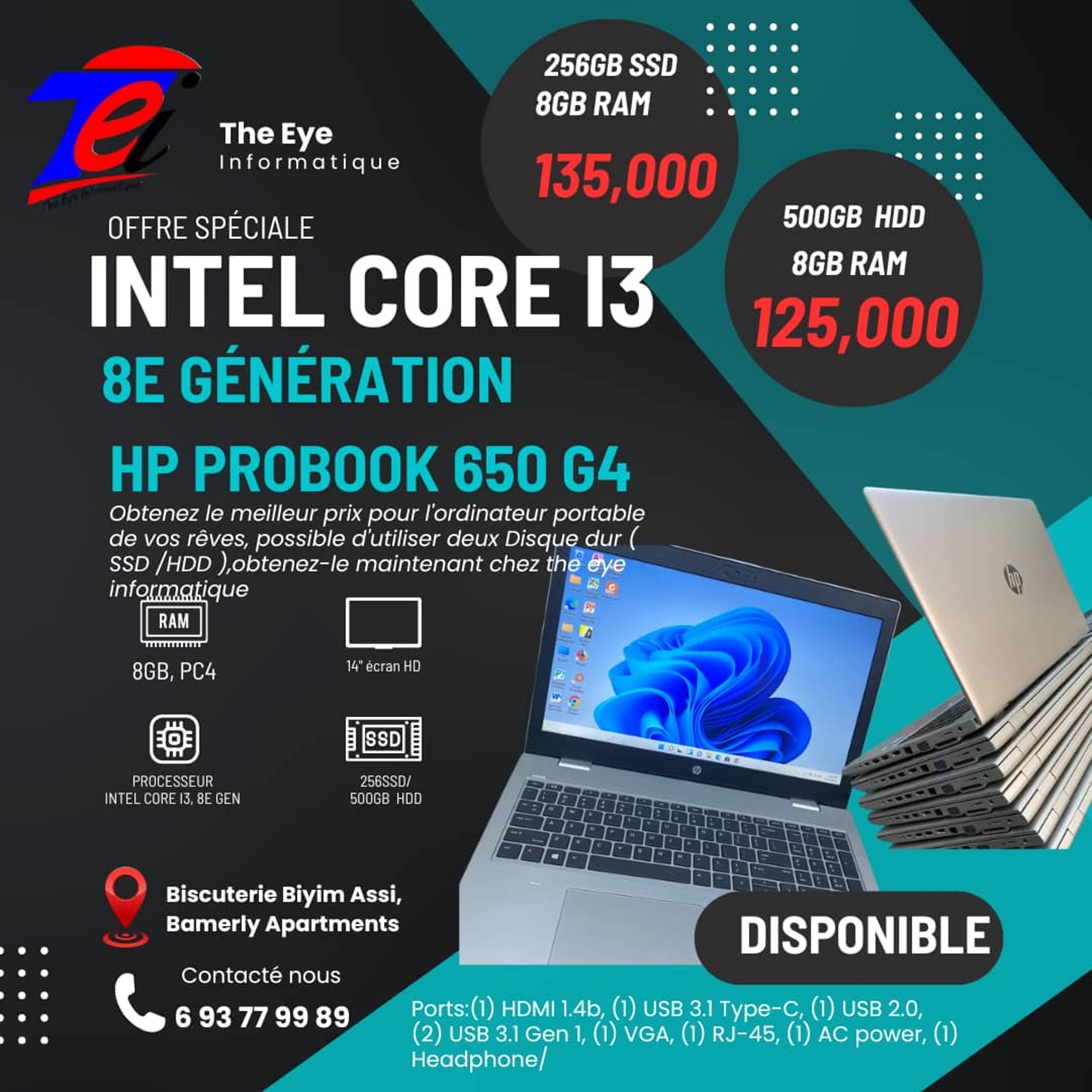 At The Eye Informatique, we offer a wide selection of brand new and gently used computers and accessories, ensuring quality and affordability for everyone in Cameroon.
